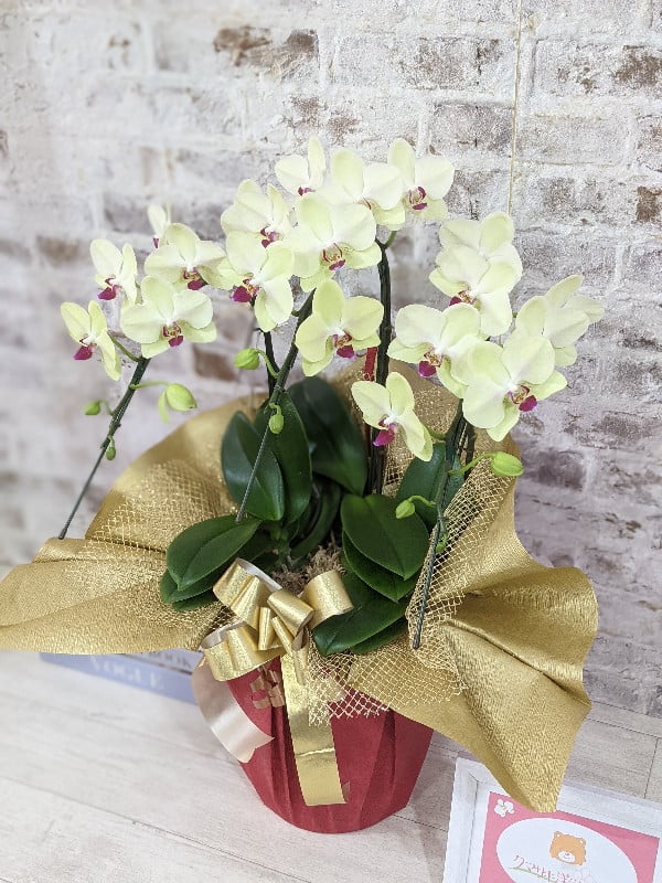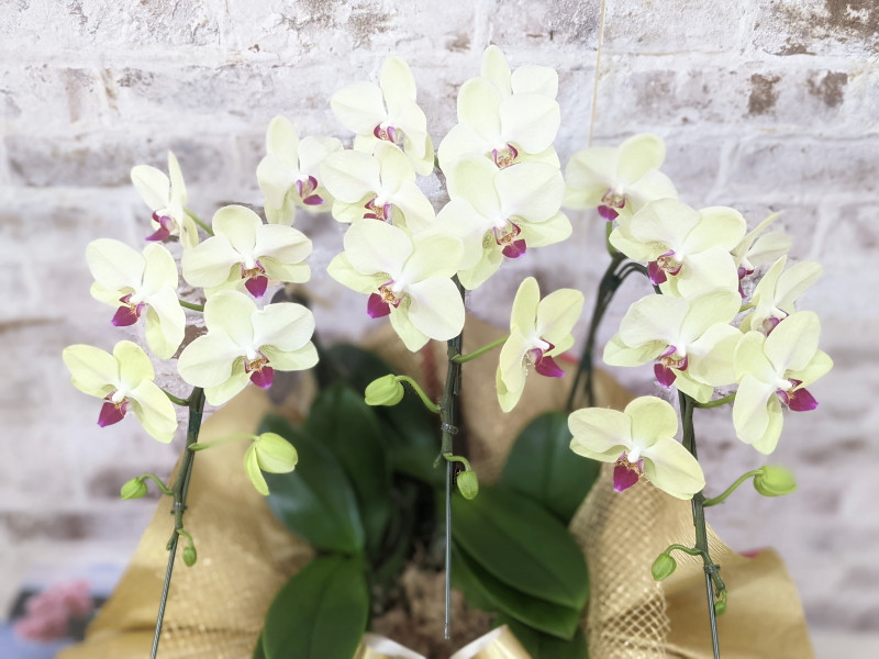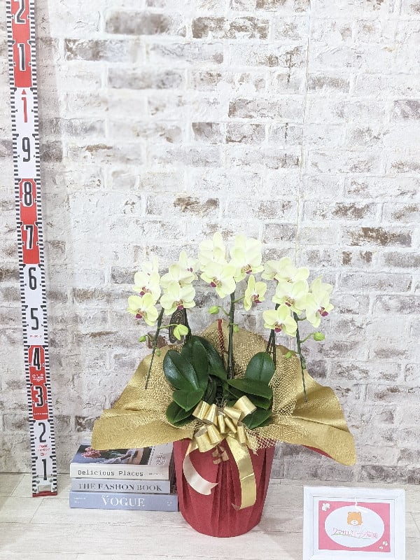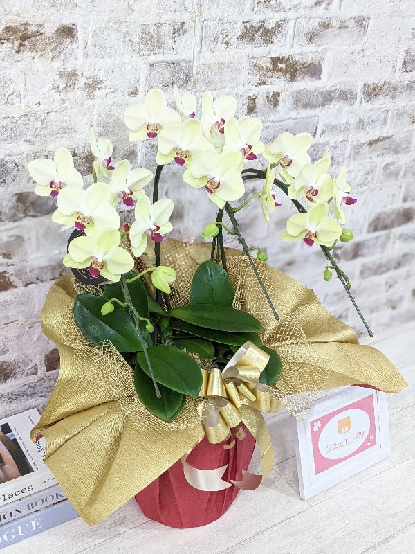 - C129 ☆金賞受賞☆超希少!イエロー胡蝶蘭’日の出’小 ミディサイズ(3本立)
