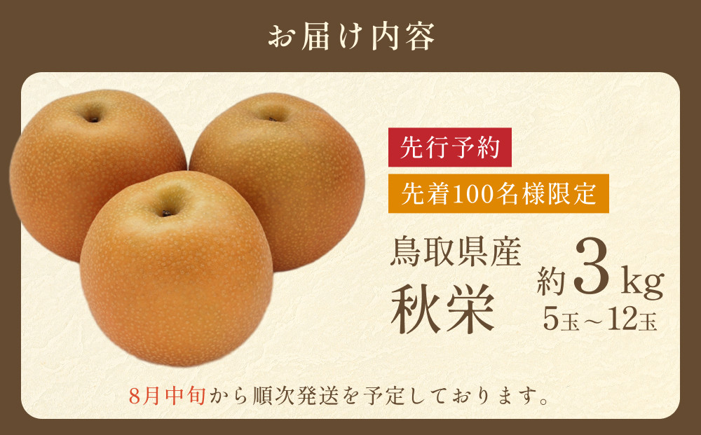 【2026・先行予約】 秋栄(あきばえ)3kg|鳥取 果物 くだもの フルーツ なし 梨 和梨 旬 数量限定 2026年収穫後【41034】