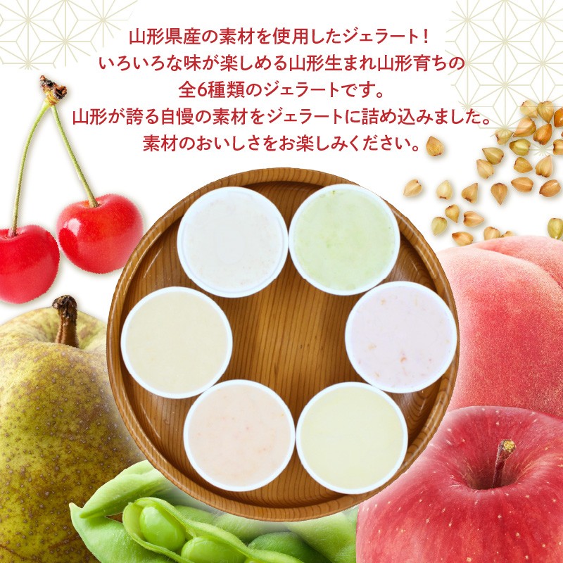 茶蔵 の やまがた ジェラート 6個 詰合せ ( 1個 120ml ) 山形県産 果物 さくらんぼ ラ・フランス ずんだ 枝豆 紅玉 りんご 白桃 でわかおり そば 使用 アイス 山形県 米沢市