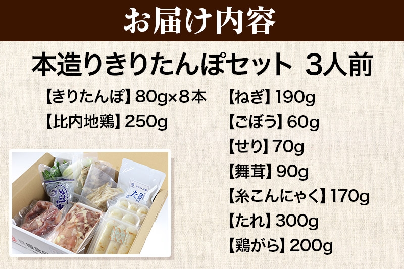 《12月発送》きりたんぽ セット 本造り 3人前 (きりたんぽ 8本 比内地鶏 250g 野菜付き) 秋田県産 鍋