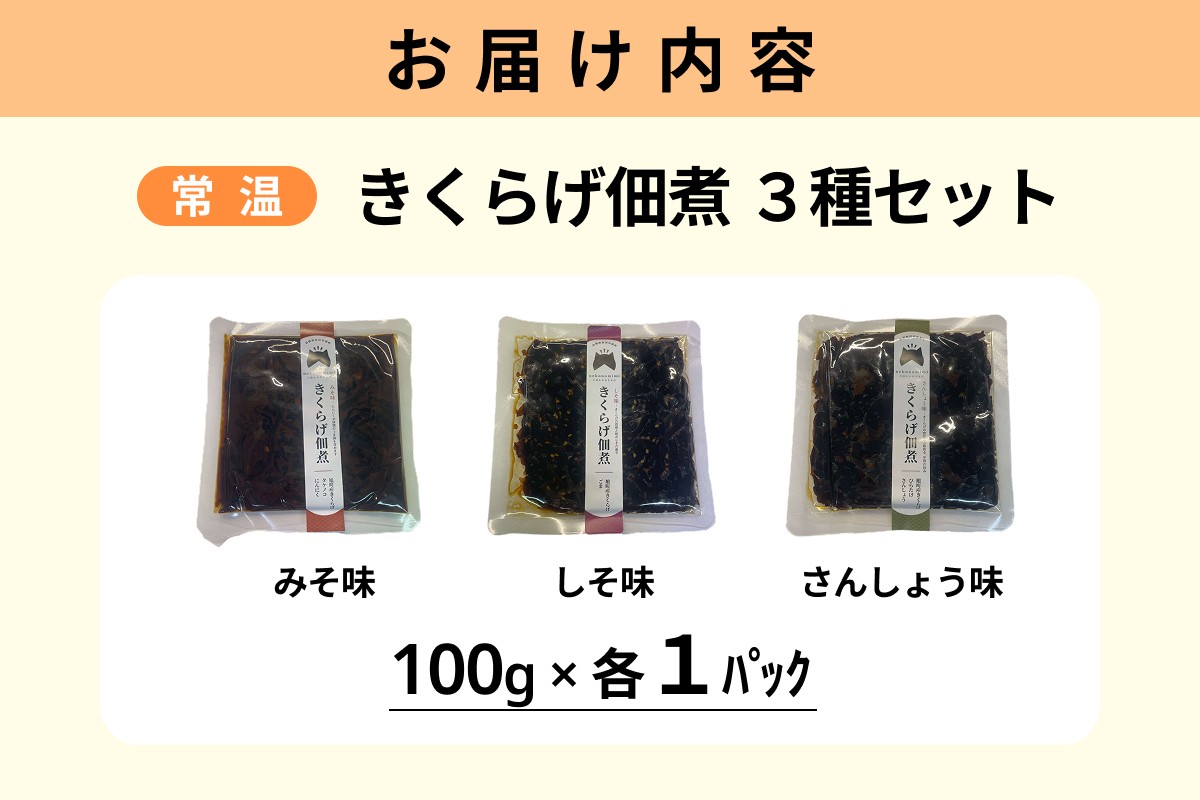 きくらげ佃煮 3種セット(みそ味、しそ味、さんしょう味) きくらげ 佃煮 3種 みそ しそ さんしょう 【157_0005】