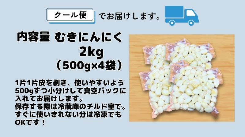 【農家直送】田子町産むきニンニク『2kg』(500g×4)