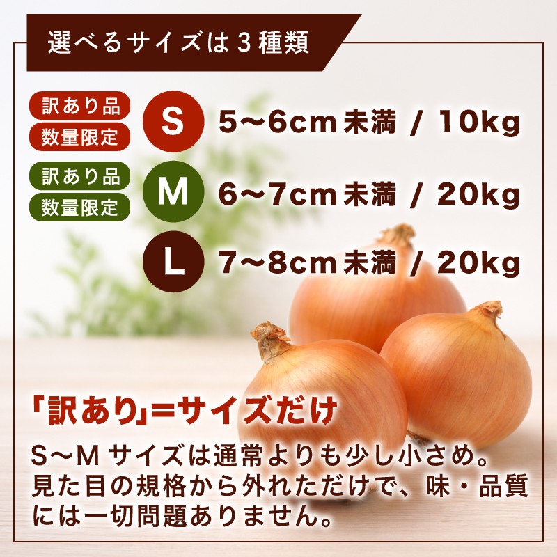 - 訳あり 玉ねぎ 20kg 選べる 令和7年度産 Sサイズ 先行予約 令和8年度産 M・Lサイズ/2026年10月上旬より順次発送 人気 おすすめ ランキング たまねぎ 玉ネギ 玉葱 オニオン ハンバーグ BBQ スープ 国産 野菜 北海道 美幌町