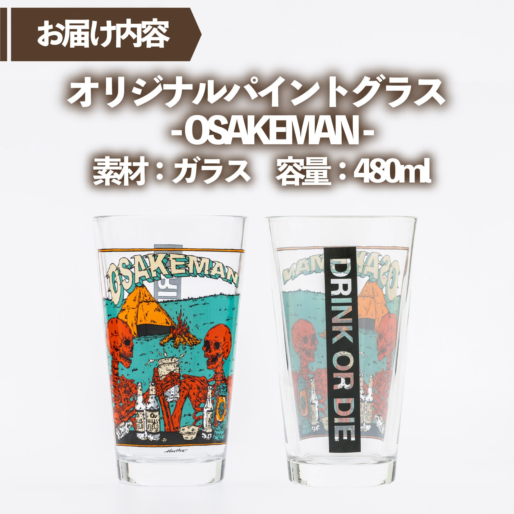 - オリジナル パイントグラス -OSAKEMAN- 480ml アウトドア キャンプ アウトドア用品 グラス 食器 ガラス コップ ビール おすすめ 人気 静岡県 長泉町 HILLSFIELD