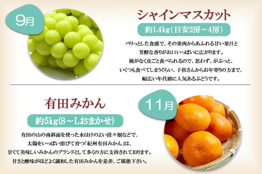 定期便全3回 【7月・8月・9月発送】 和歌山のフルーツをお届け(桃・たねなしピオーネ・シャインマスカット)【TM180】