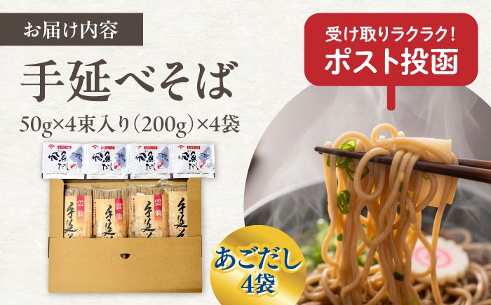 - 【希少!強いコシ】手延べ そば800g (200g×4袋) あごだし10g×4袋 / つゆ付き 蕎麦 ソバ そば 乾麺 麺 / 南島原市 / 野村屋[SCS018]
