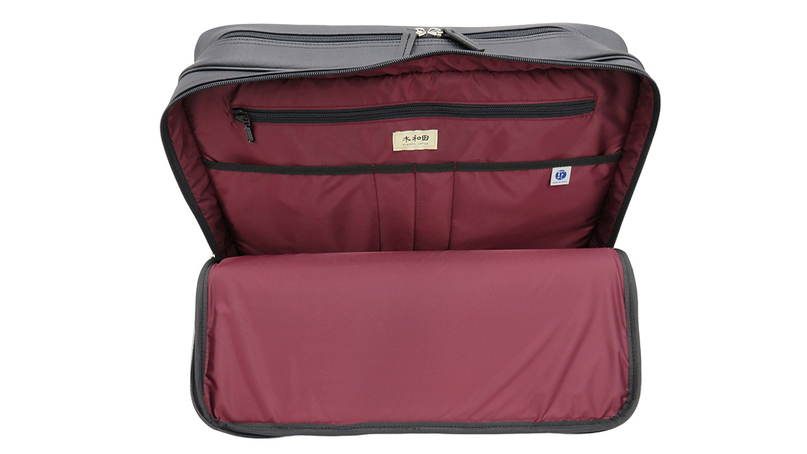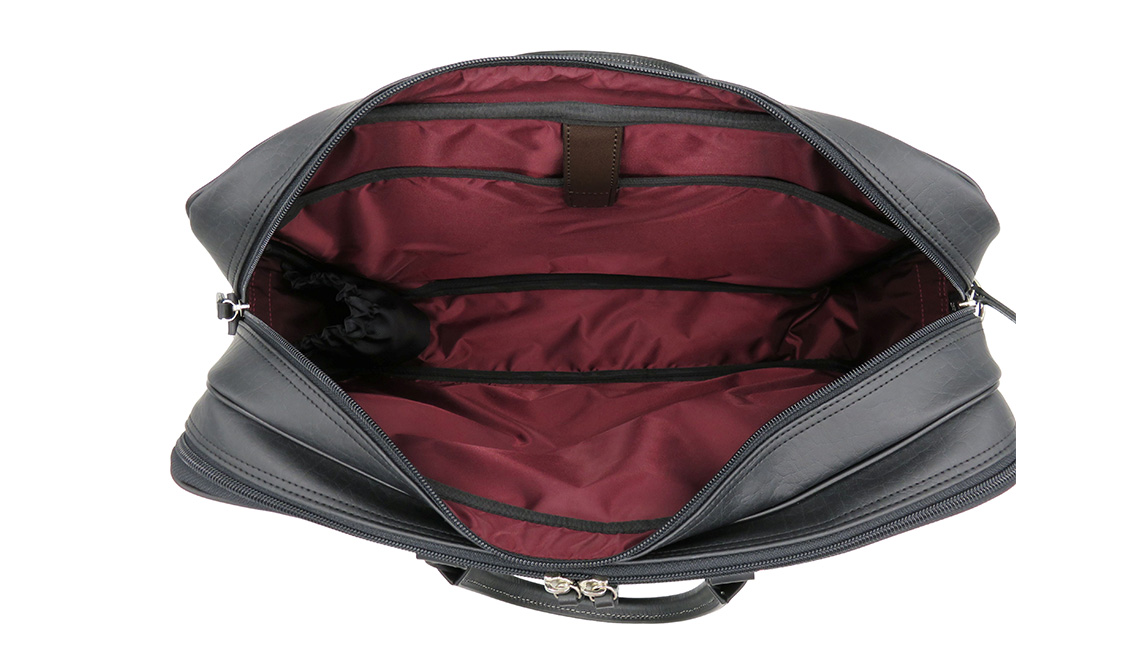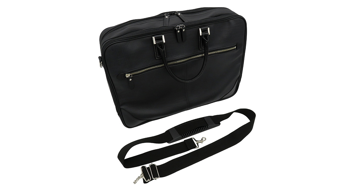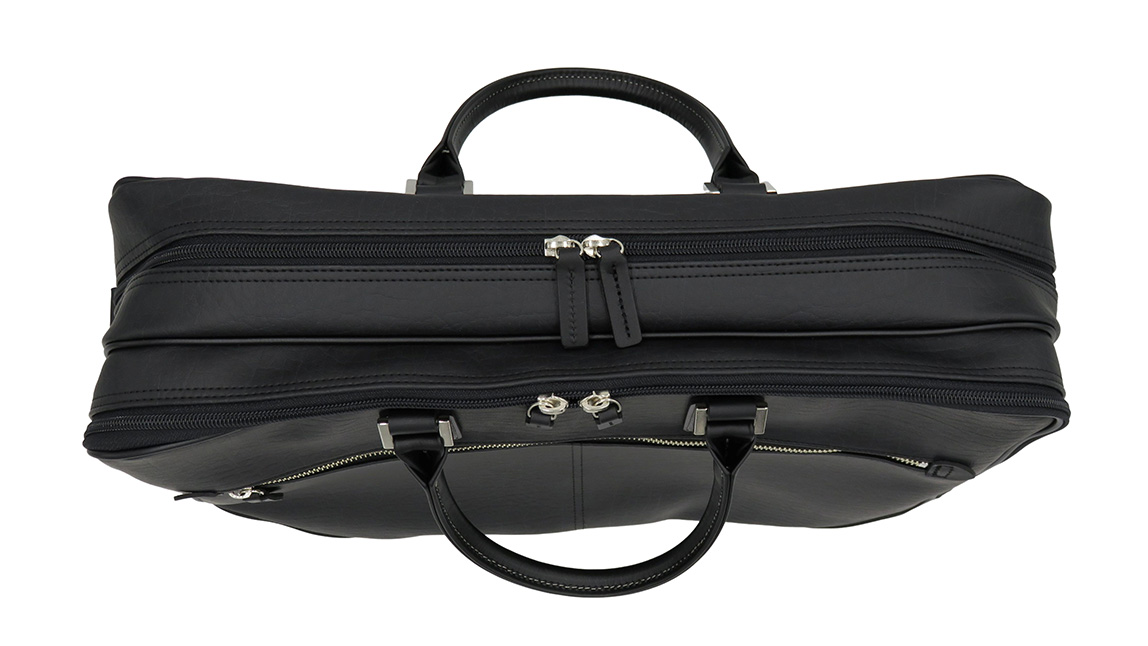 ワイドビジネスバッグ ブラック ( No.5026-01 ) / ビジネスバッグ 豊岡 職人手作り B4サイズ対応 大容量 出張 一泊二日 2層式 肩当て付きショルダーベルト 底鋲 日本製 メンズ レディース バッグ かばん 鞄 黒 紺 木和田株式会社