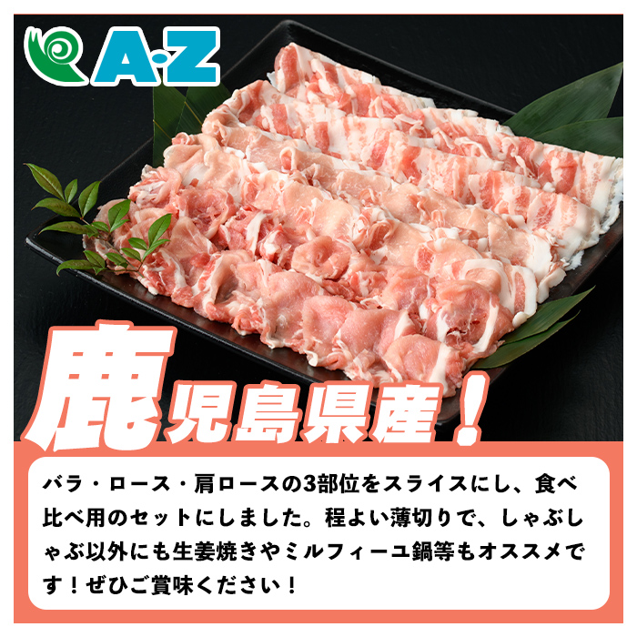 - 鹿児島県産 黒豚 しゃぶしゃぶセット(合計900g・各300g×3種) 国産 九州産 鹿児島産 豚肉 黒豚 スライス 薄切り バラ ロース 肩ロース 鍋 生姜焼き 食べ比べ 詰め合わせ 小分け 【株式会社マキオ】akn068-01