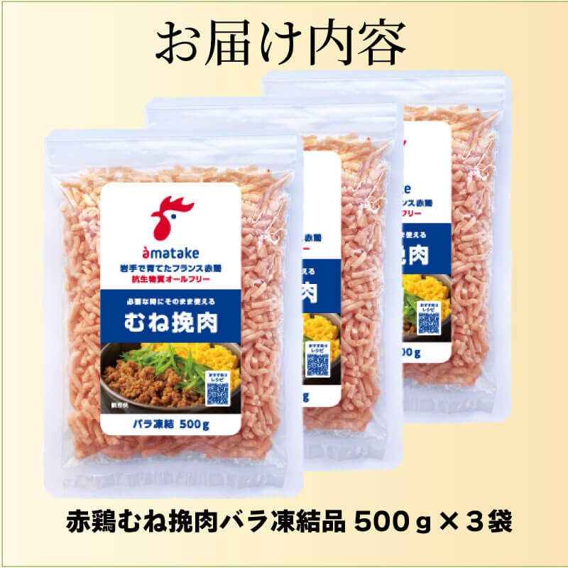 岩手で育てたフランス赤鶏 鶏むねひき肉 1.5kg (500g×3袋) 鶏肉 肉 挽き肉 ひき肉 冷凍 フランス赤鶏 岩手県 大船渡市 [amatake030_1]