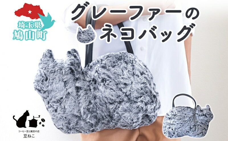 - 【ふるさと納税】グレーファーのネコバッグ バッグ 猫 ねこ ネコ ファー ねこシルエット 裏地付き 内ポケット 上品 グラデーションファー 雑貨 豆ねこ 埼玉県 鳩山町