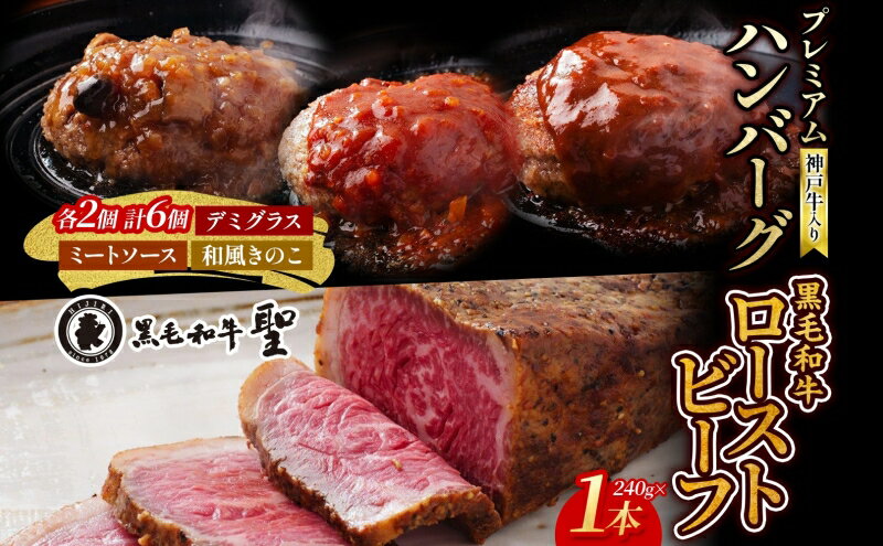 - 【ふるさと納税】神戸牛入り プレミアム ハンバーグ 6個& 黒毛和牛 ローストビーフ 1本(240g)セット 牛肉 お肉 肉の加工品 黒毛和牛ローストビーフ