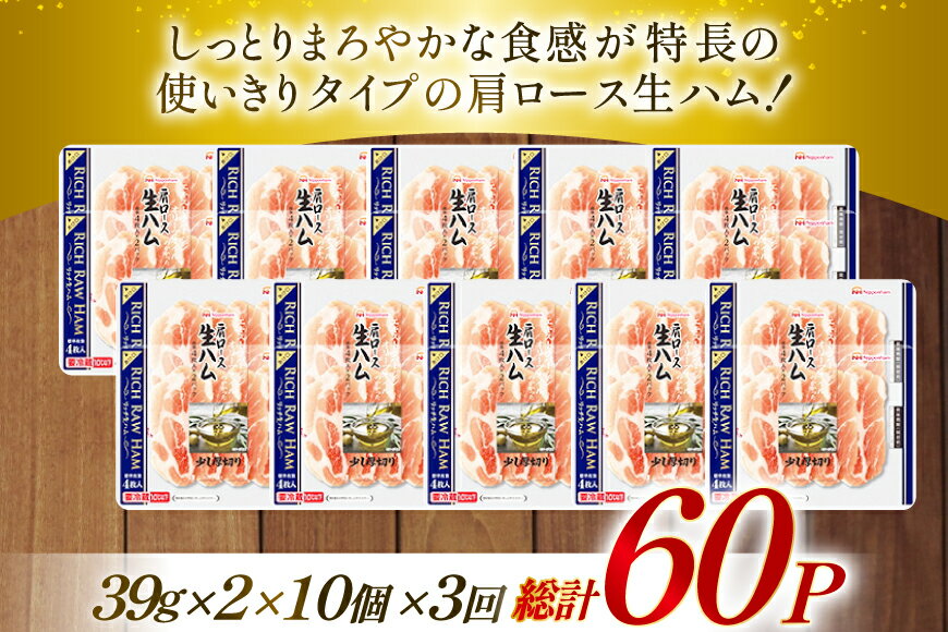 【ふるさと納税】 ハム 定期便 3回 リッチ 肩ロース 生ハム 10パック 2束入り 総計30個 [日本ハムマーケティング 青森県 おいらせ町 oi02ayo820016] ロースハム 肩ロースハム 小分け 使い切り セット 少し厚切り 39g はむ 冷蔵