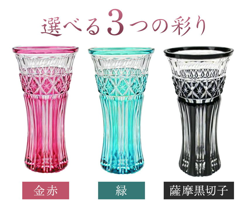 - 【ふるさと納税】薩摩切子 フラワーベース 選べる3色 金赤 緑 薩摩黒切子 薩摩びーどろ工芸株式会社《90日以内に出荷予定(土日祝除く)》鹿児島県 さつま町 送料無料 伝統工芸 切子 さつま切子 花瓶
