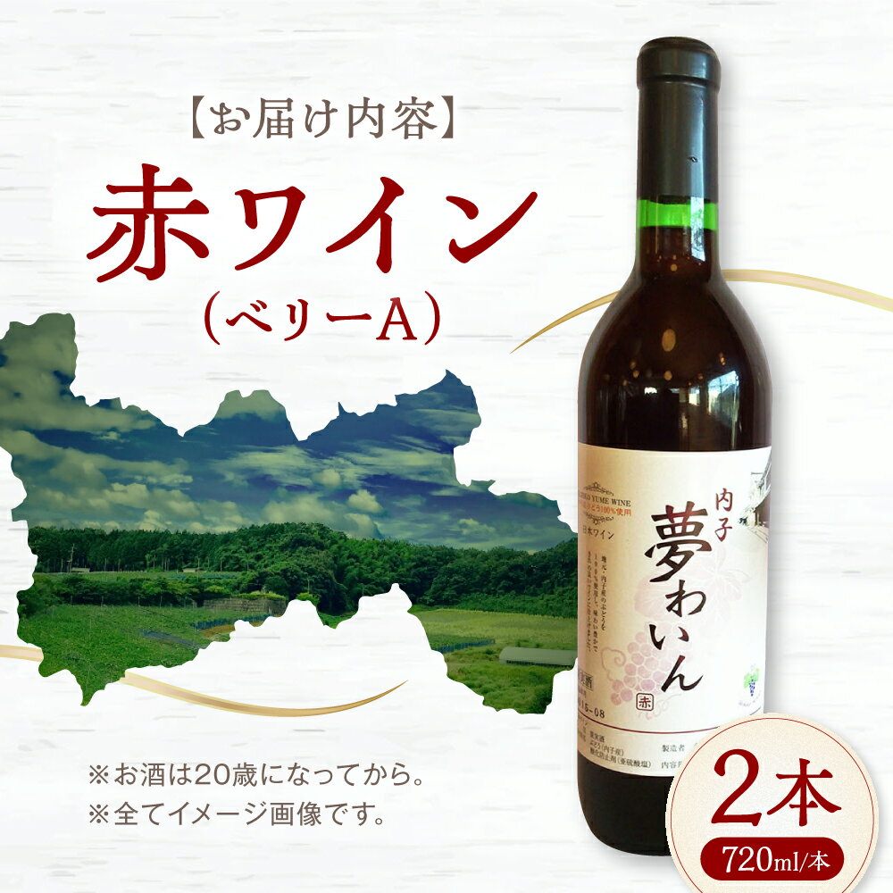 - 【ふるさと納税】内子夢わいん 赤ワイン (ベリーA) 約720ml 2本 / ワイン 赤ワイン ベリーA わいん wine お酒 酒 洋酒 愛媛県 愛媛 内子町 国産ワイン 日本ワイン 果実酒 送料無料 人気 家飲み 宅飲み 美味しい 【企業組合内子ワイナリー】[BKAG007]