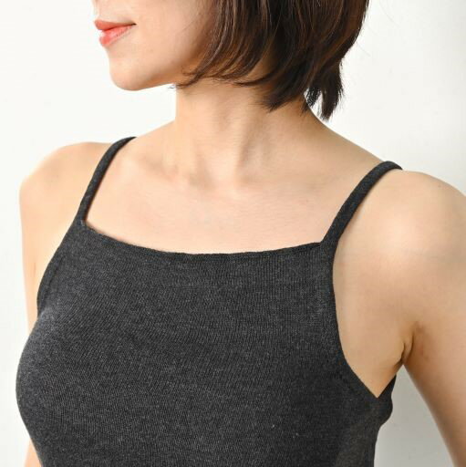 - 【ふるさと納税】日本製 オーガニックコットン ゆるふわ キャミ S-M 無縫製 チャコール (6661-7356)【1324119】