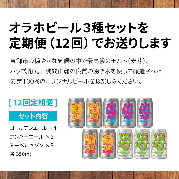 【ふるさと納税】【12回定期便】【クラフトビール】オラホビール 3種10本 飲み比べ ビールセット|ゴールデンエール、アンバーエール(アンバー)、ヌーベルセゾン(セゾン)|長野 信州 東御 ※スピード発送