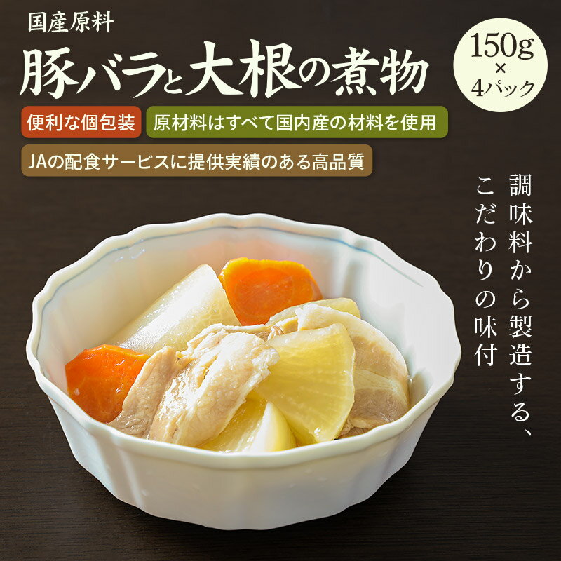 【ふるさと納税】国産原料 豚バラと大根の煮物 150g×4パック 最短3〜5営業日以内発送 [ぶた肉 ブタ肉 大根 だいこん ダイコン 人参 にんじん ニンジン]