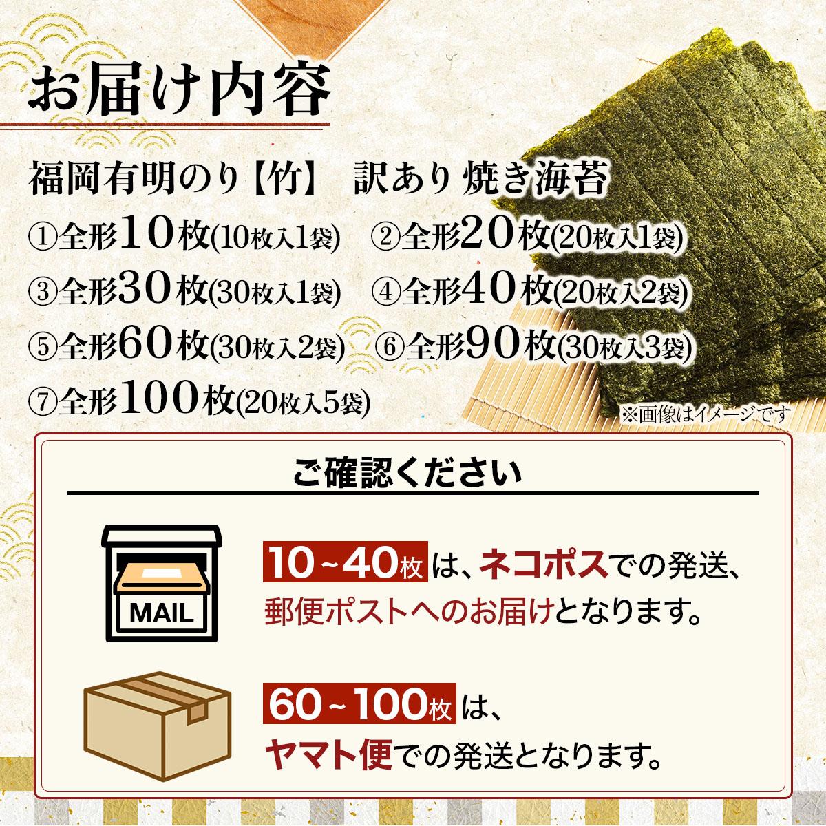 - 【ふるさと納税】<選べる容量>【訳あり】福岡有明のり 焼き海苔 全形10枚~100枚
