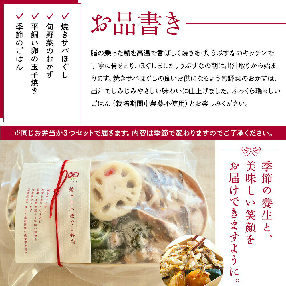 - 【ふるさと納税】【冷凍】焼きサバほぐし弁当3食セット 有機・特別栽培野菜 九州 福岡