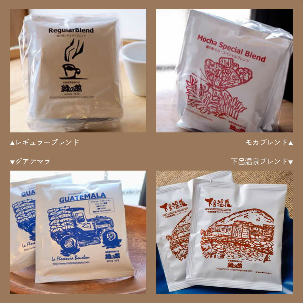 【ふるさと納税】緑の館/ドリップ4種(レギュラー・下呂温泉・モカ・グアテマラ 各5杯)(計20杯)セット コーヒー コーヒードリップ ドリップバック ドリップパック 飲み比べ 珈琲 グリーンハウスコーヒー 下呂市