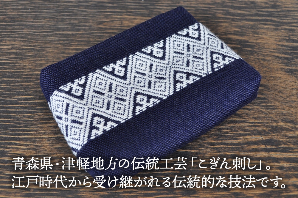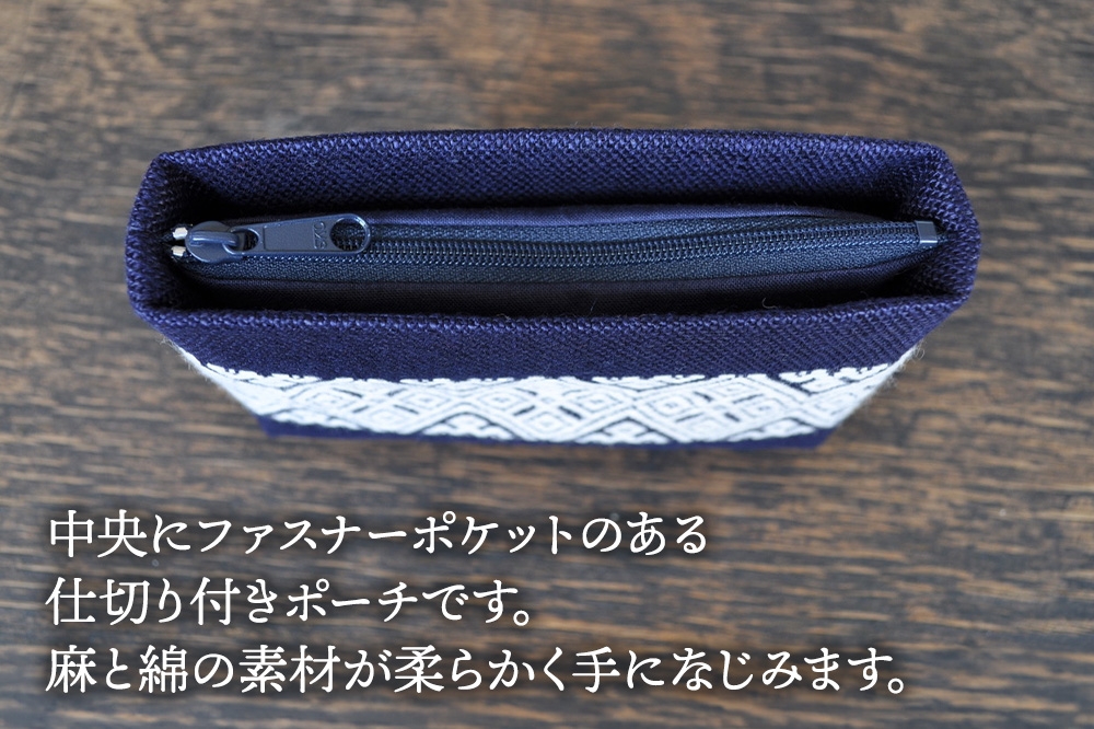 - 津軽こぎん刺し ポーチ【 民芸品 工芸品 伝統技術 日用品 雑貨 ポーチ 】 [ポーチ こぎん刺し 伝統工芸 刺繍 素朴 繊細 美しい 麻 綿 小物入れ 手になじむ 仕切り付き]