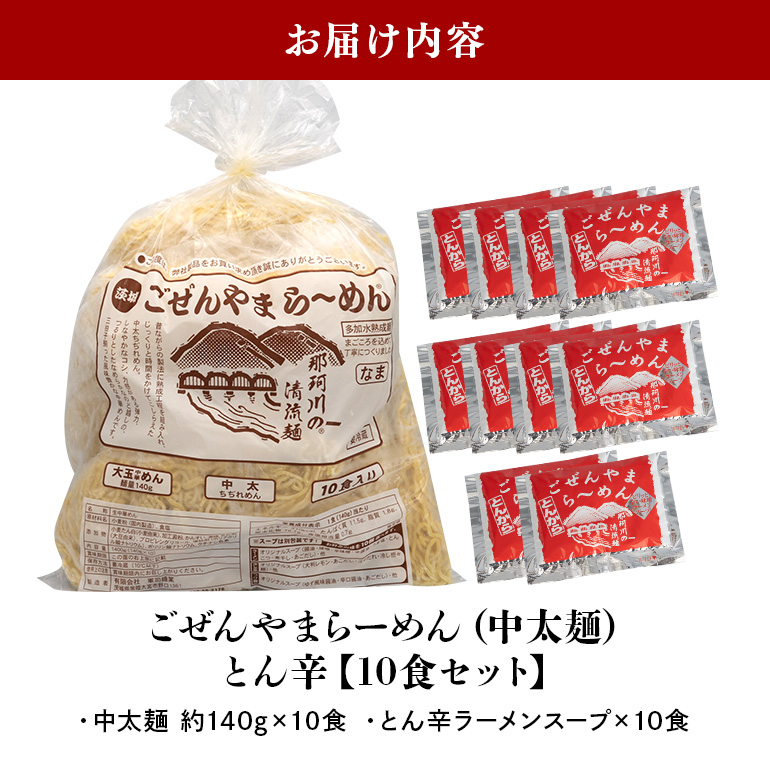 - ごぜんやまらーめん とん辛 中太麺 10食 セット 詰め合わせ 辛味噌 旨辛 生麺 スープ付き ラーメン 【(有)軍司麺業】 【ho1406】