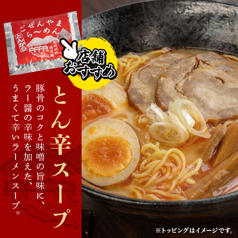 ごぜんやまらーめん とん辛 中太麺 10食 セット 詰め合わせ 辛味噌 旨辛 生麺 スープ付き ラーメン 【(有)軍司麺業】 【ho1406】