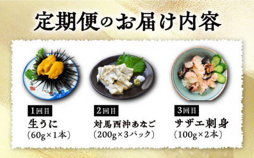 【全3回定期便】対馬産 海の幸定期便 《対馬市》【保家商事】 長崎 九州 つしま 対馬市 定期便 ていきびん 毎月届く ウニ さざえ 穴子 刺身 刺し身 うに 雲丹 栄螺 あなご 詰め合わせ 魚介 海鮮 [WAA013]
