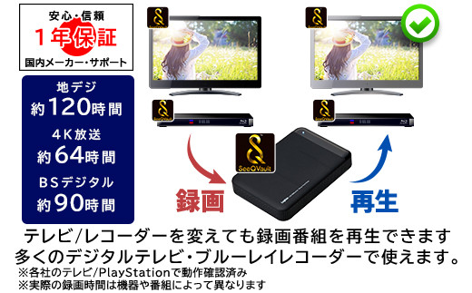 - 【083-02】ロジテック SeeQVault(シーキューボルト)対応 テレビ録画用 2.5インチ ポータブルハードディスク 1TB 【LHD-PBMB10U3QW】