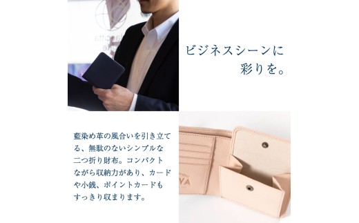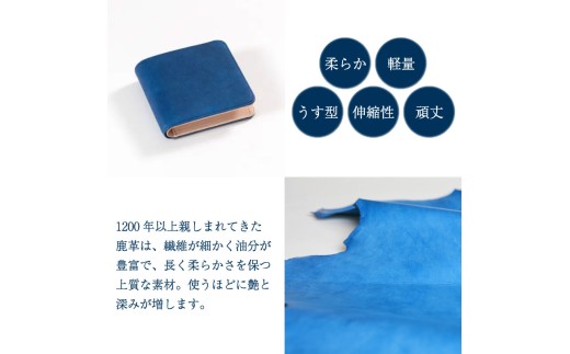 - 財布 藍染 国産 鹿革 水色 手作り 二つ折り財布 ウォレット カード ポケット 藍染め 阿波藍 革製品 間伐材の布 カードケース 軽量 おしゃれ ファッション 小物 アクセサリー ビジネス ギフト プレゼント 祖谷 みよし 徳島県 三好市 DIYA
