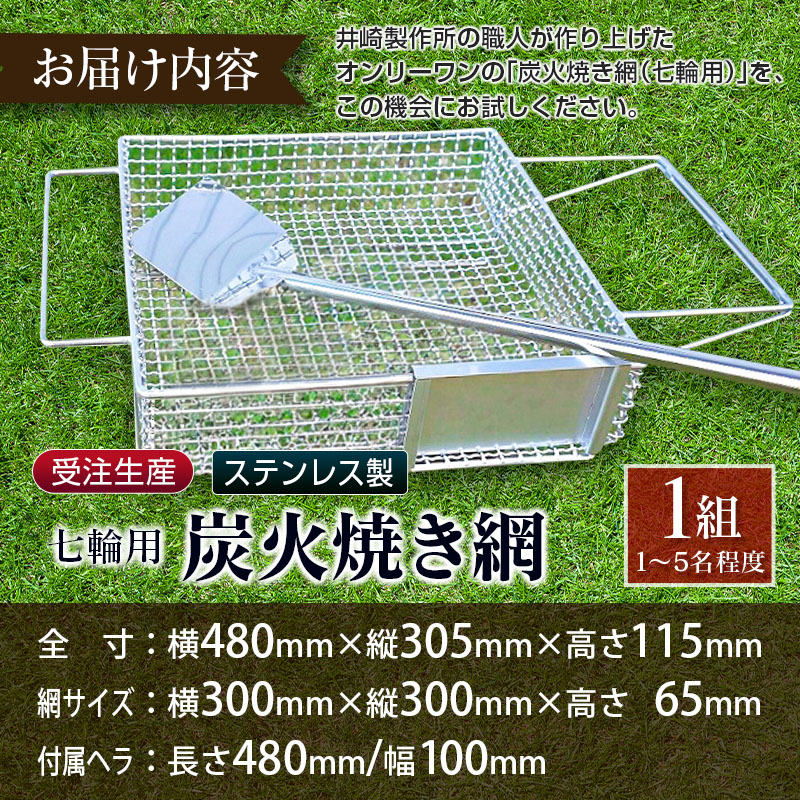 - 炭火焼き網 1台 七輪用 付属ヘラ ステンレス製 鶏炭火焼き アウトドア キャンプ 井崎製作所【E100】