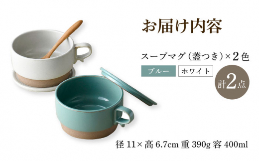 - 【波佐見焼】【オーブン可】スタッキング 蓋つき スープマグ 2点セット ブルー・ホワイト マグカップ スープカップ 小皿 食器 皿 【舘山堂】 [RC45] スープマグ スープカップ マグカップ