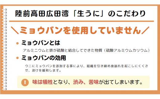 - うに 生うに 無添加 100g 【2026年発送先行予約】 ミョウバン不使用 国産 塩水パック 獲れたその日に出荷! 【 岩手 陸前高田 ムラサキウニ 濃厚 天然 おためし 個数限定 数量限定 三陸産 】配達指定不可 RT2424