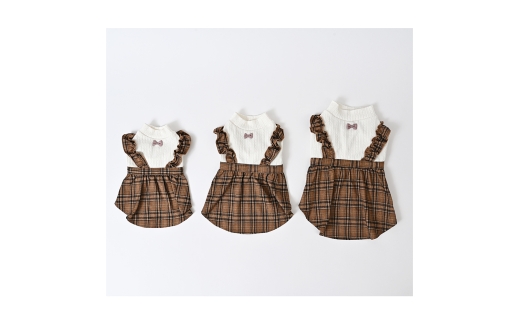 - ケーブル風ジャージチェックワンピース ブラウン チェック柄 (S) 犬服 ドッグウェア【ココアトワ(cocoAtoi)】 [№5223-7085]0229