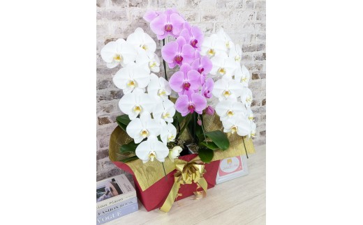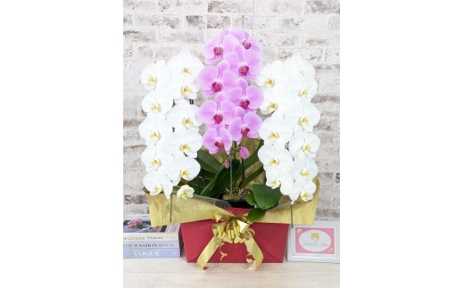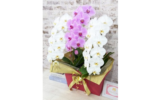 B099 【☆新機能☆ZERO胡蝶蘭】 紅白胡蝶蘭 3本立て*白・ピンク*(大輪)<7つの特典付き!>〈約高さ90cm、横幅55cm、奥行き40cm〉33輪以上