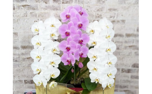 - B099 【☆新機能☆ZERO胡蝶蘭】 紅白胡蝶蘭 3本立て*白・ピンク*(大輪)<7つの特典付き!>〈約高さ90cm、横幅55cm、奥行き40cm〉33輪以上