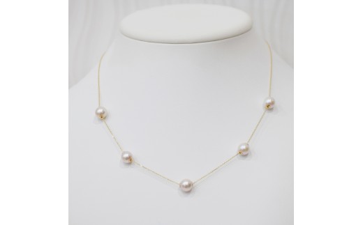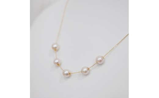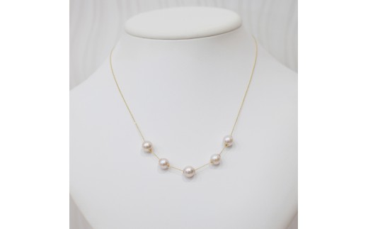 S101-457_あこや真珠 天草 ネックレス ピンク スルー シリコン 5連 7.5mm - 8mm 真珠 調色 K18YG