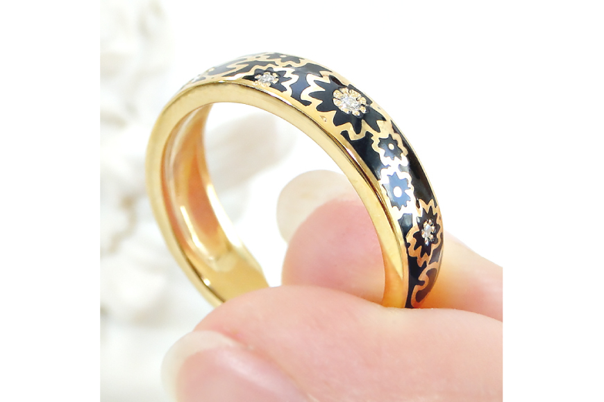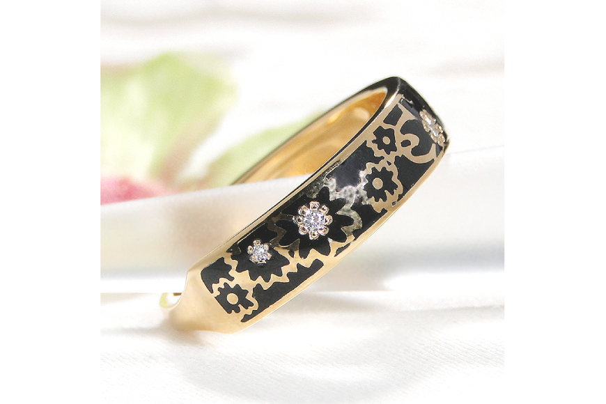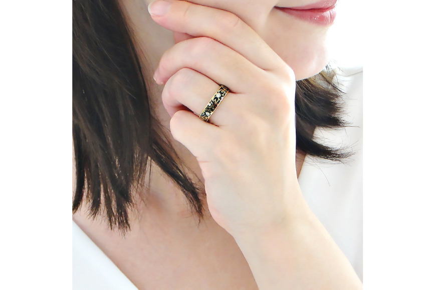 - 指輪 K18YG 桜リング (小)【幅5.0mm】黒/黒 ダイヤ 0.06ct 18金 イエローゴールド エポキシ 樹脂 レジン 無垢 男女兼用 アクセサリー【se001-k18yg-bb】 [オーダーメイドジュエリーメイ 山梨県 韮崎市 20743773]