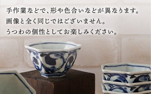 - 【波佐見焼】唐草 六角小付(六角仙茶)5個セット【陶もと】 [PE47]