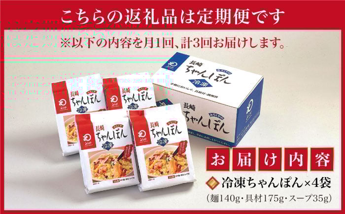 【全3回定期便】【具材付き】長崎 ちゃんぽん 4人前 《みろく屋》 [DBD021] チャンポン 簡単調理 時短 野菜 一品 冷凍 保存