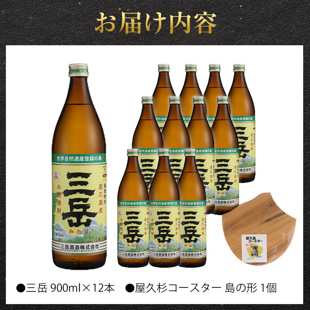 【ふるさと納税】三岳900ml 12本入+屋久杉コースター 島の形
