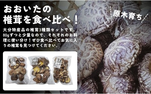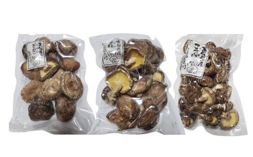 干し椎茸セット(どんこ・香信・こつぶ各80g) 原木栽培