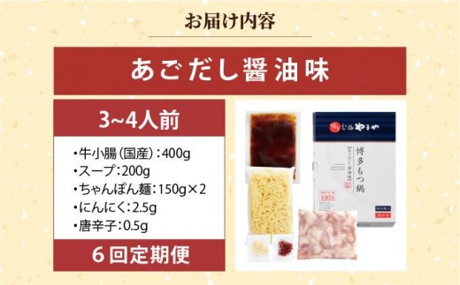<定期便・全6回>博多もつ鍋 あごだし醤油味 3~4人前【やまや】