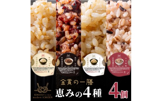 ご飯パック 金賞 健康米 食べ比べ 恵みの4種セット 黒米 金のいぶき キラリモチ 十六雑穀 120g×4個入り 国産 レンチン もち麦 軽食 夜食 簡単 白米 麦 食物繊維 ビタミン 御飯 ごはん パック ご飯 パックライス
