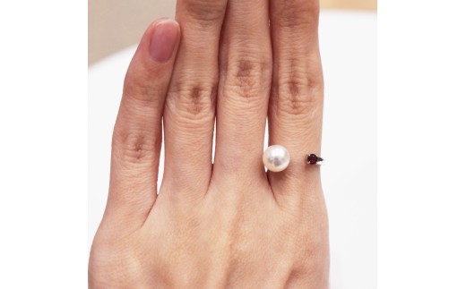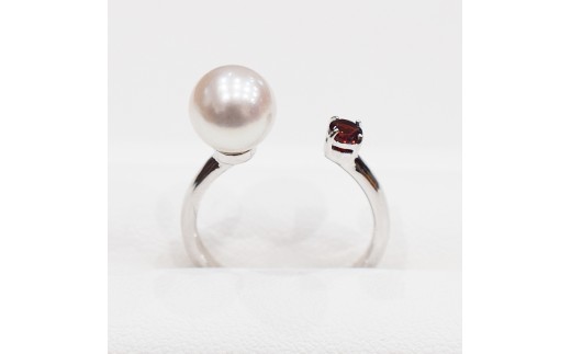 S085-457_あこや真珠 リング 7.5mm - 8mm ホワイトピンク ガーネット 真珠 (D:11号)