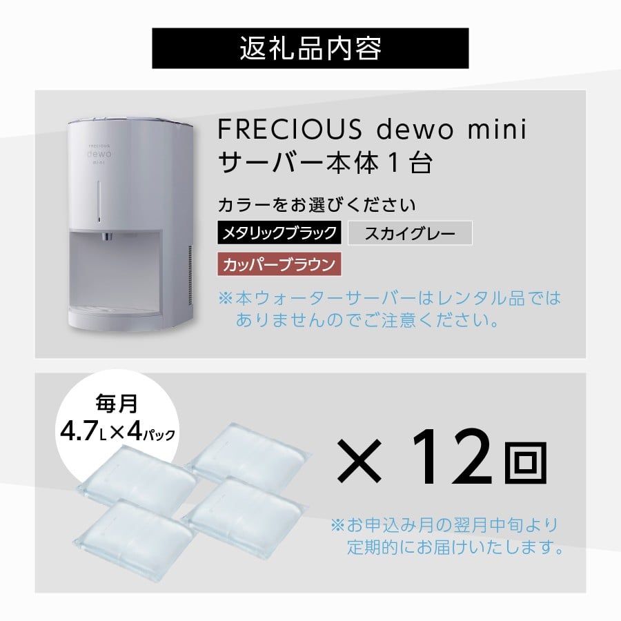 【定期便】小型卓上ウォーターサーバー FRECIOUS dewo mini(12回お届け) 天然水 飲料 ウォーターサーバー 家電製品 富士山 山梨 富士吉田 新生活