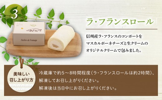 - 【アトリエ・ド・フロマージュ】こだわりチーズ工房の3種のケーキセット(ケイク・ショコラ・ブルー、ケイク・フロマージュ、ラ・フランスロール) 各1個
