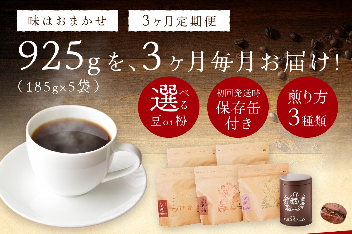 スローな浜田で焙煎をした珈琲(925g×3回の定期便) 定期便 3回 コーヒー コース 定期便 ドリップ 自家焙煎 こだわり バレンタイン ホワイトデー 豆 粉 自家焙煎【023_1927】