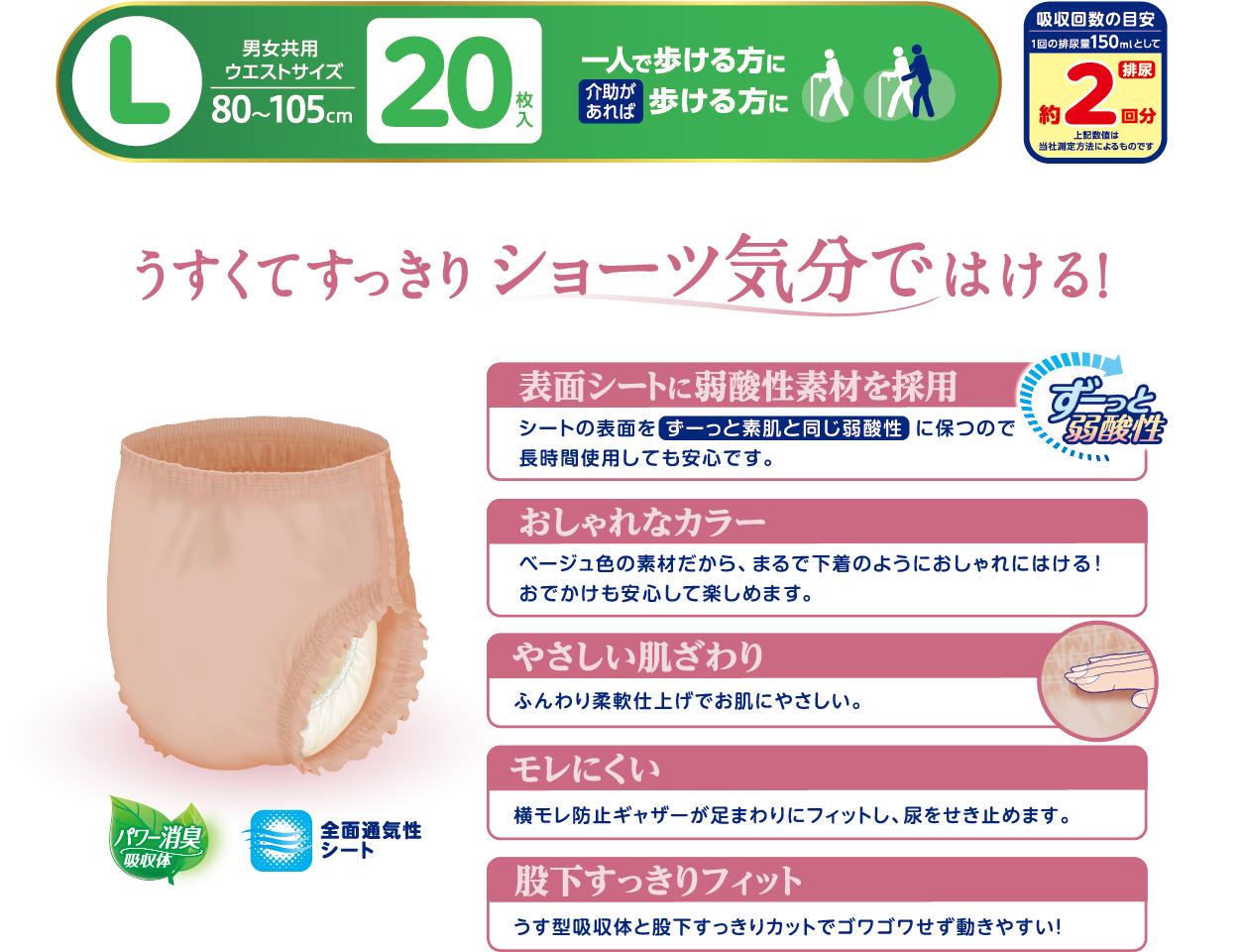 - リフレ オムツ はくパンツ 2パック 下着 のような ベージュ タイプ M / L 紙おむつ 安心 あんしん おむつ うす型 すっきり 尿モレ 尿もれ 尿ケア専用品 尿ケア 紙パンツ 介護 介護用品 尿 まとめ買い 買いだめ ストック 女性 日用品 消耗品 備蓄 防災 徳島県 三好市 みよし miyoshi リブドゥ