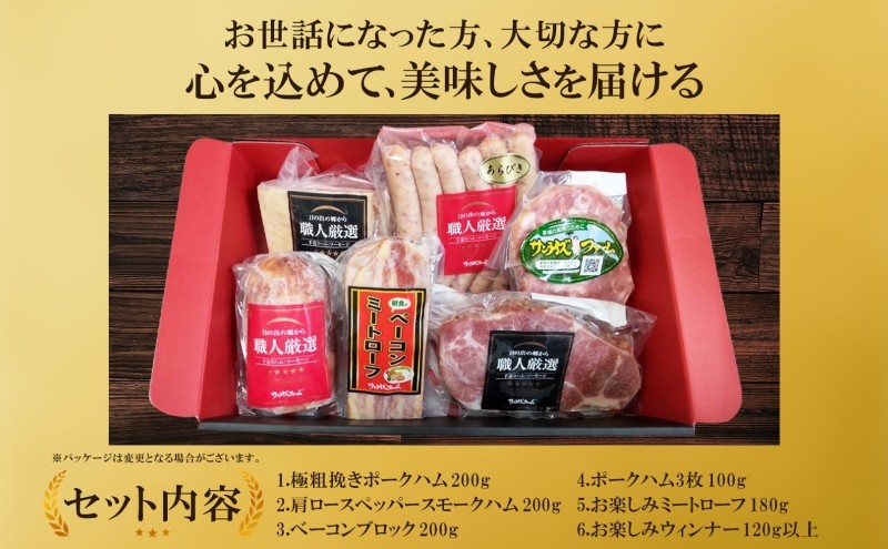- 1kg保証ハムギフト 6品 熨斗あり 極粗挽きポークハム 肩ロースペッパースモークハム ベーコンブロック ポークハム お楽しみミートローフ お楽しみウィンナー 国産 自家製 豚肉 肉厚 ブロック ハム ベーコン 冷凍 送料無料 サンライズファーム 千葉県 香取市 SRF009_N9